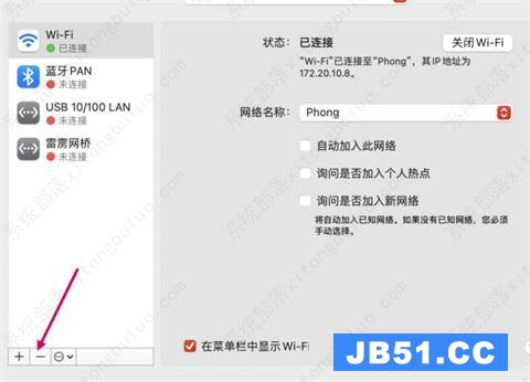 4、将左栏wi-fi删掉,点击红色箭头“—”。