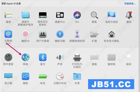 2、在“系统偏好设置”中,打开“网络”选项。