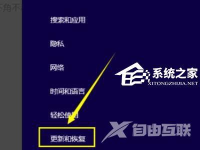 2、在设置窗口中的左侧点击打开更新与恢复。