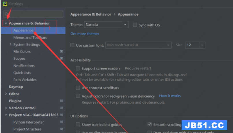 4、打开Settings 找到Appearance Behavior,点击左侧的小三角找到Background Image。
