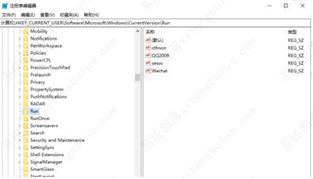 2、然后在打开的注册表编辑器窗口中定位到计算机HKEY_CURRENT_USERSoftwareMicrosoftwindowsCurrentVersionRun。