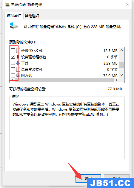4、要删除的文件勾选需要删除的,然后点击确定。