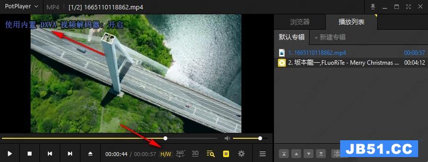 1、第一步,其实在视频的播放页面中,我们打开一个视频之后在下方工具栏中就能找到解码图标,显示为“S/W”时表示是软解,显示为“H/W”时,表示是硬解,我们点击该处的选项使其变为“H/W”即可。