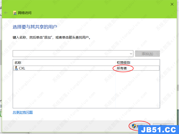 3) 点击‘共享’列名,选择‘共享’按钮;