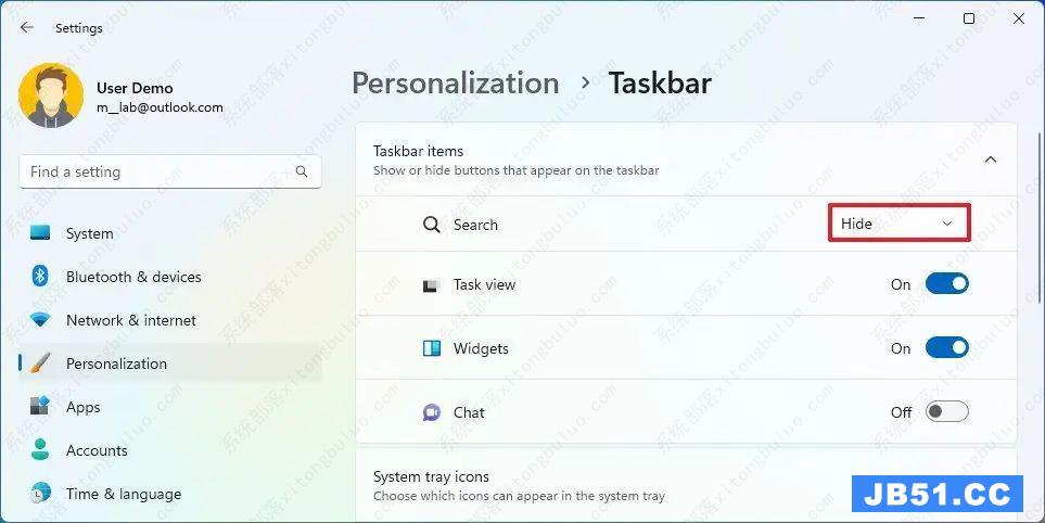 要删除 Windows 11 上的任务栏搜索框,请使用以下步骤: