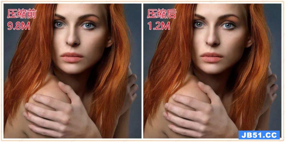 图片经过压缩处理后,尺寸缩小了9倍,画质没有受损,人像的皮肤纹理细节依旧清晰可见。