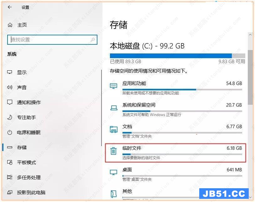 进入电脑的【设置】-【系统】-【存储】,找到【临时文件】,可以看到临时文件也会占用很大的内存空间。