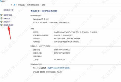 1、上述方法不行的话,我们可以通过设置虚拟内存来加大运行内存的总量,鼠标右键单击此电脑,选择属性,进入页面,单击左侧的高级系统设置,弹出窗口,在性能选项下方点击设置。