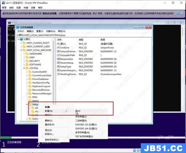 3、展开【HKEY_LOCAL_MACHInesYstemSetup】右键【Setup】选择新建项,将名称设置为【LabConfig】。
