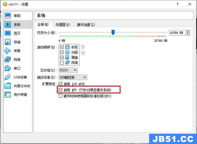 1、首先进入虚拟机配置中将【启用EFI】【启用嵌套VT-x/AMD-V】【3D加速】三个功能勾选开启。