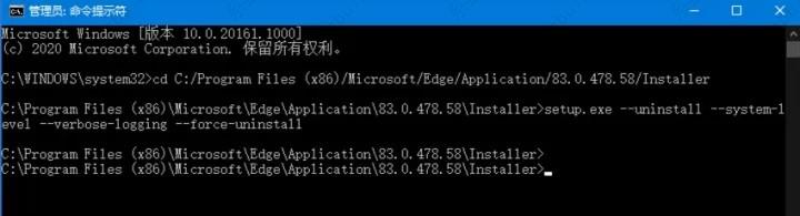 cd C:/Program Files (x86)/Microsoft/Edge/Application/83.0.478.58/Installer
