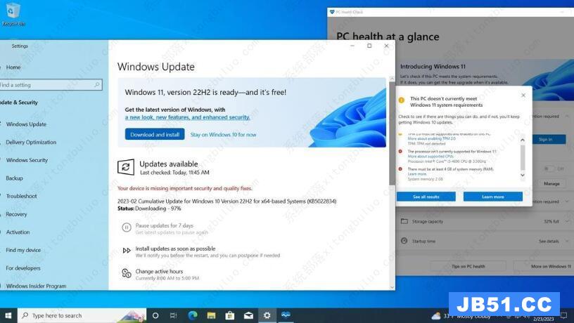 这台虚拟机在安装最新的累积更新之后,可以看到全屏的 Win11 升级提醒。翻译如下: