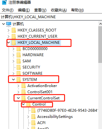 2、依次展开HKEY_LOCAL_MACHINE/SYSTEM,