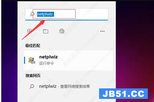 1、首先在搜索框中搜索“netplwiz”。