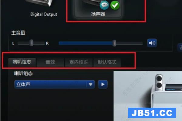 2、进去Realtek高清晰音频管理器界面之后,主要对扬声器进行设眠罩露置,可以设置喇叭组态,音效,室内校正,默认格式四个方面。
