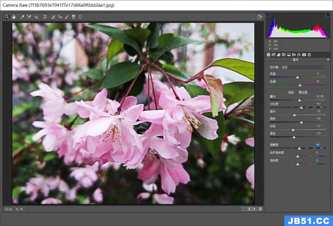 5、最后,按快捷键Ctrl+Alt+Shift+E合并图层,执行【滤镜-Camera Raw滤镜】对图片进行调色。参数值可以参考下图: