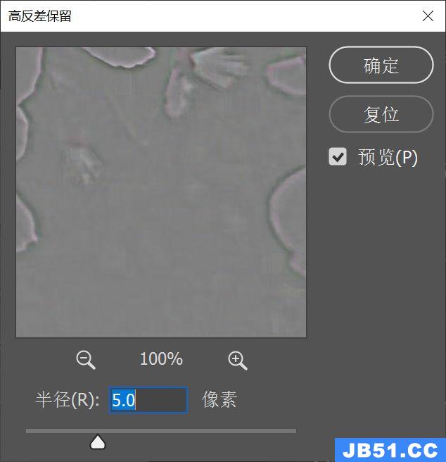 2、对图层1 执行【滤镜—其他—高反差保留滤镜】,弹出调整窗口。高反差保留滤镜主要是将图像中颜色、明暗反差较大部分的交界处保留下来,即有明显轮廓线的地方会保留下来,半径越小,色彩越相似;半径越大,保留原图细节越多,色彩差异也就越大;设置半径的时候,观察画面,在保证色彩差异的情况下,尽可能的把半径拉大一些。这一步,主要是通过高反差保留锐化图像的边缘轮廓线。