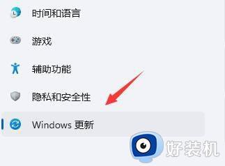 4、打开windows设置后,进入左边栏的“Windows更新”选项。