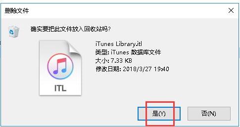 5、进入后,找到“itunes library.itl”文件,右键将它给删除。