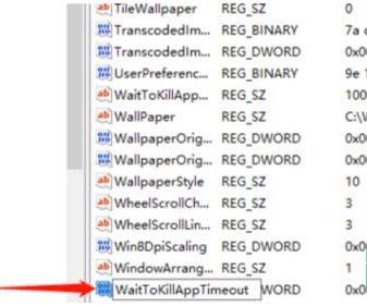 7、说明系统中之前已经有此文件,直接在右边找到名为“WaitToKillAppTimeout”的文件。如下图: