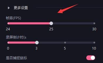 4、点开更多设置,可以修改录制的帧率以及录屏倒计时,以及是否显示鼠标。