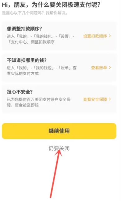 美团外卖极速支付关闭方法