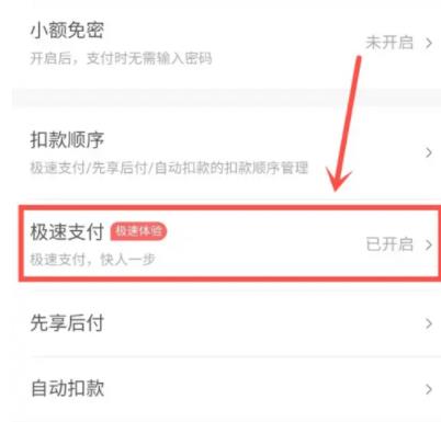 3、进入设置界面,点击【极速支付】。