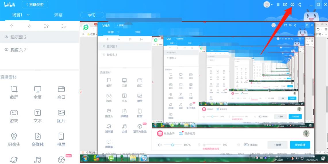 1、打开哔哩哔哩直播姬后,单击右上角的“设置”;