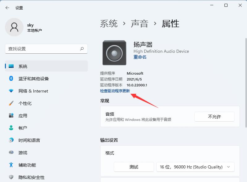 4、调过之后,没有声音,可以点击检查驱动程序更新;