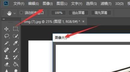 3、然后点击工具栏中的图像,打开图像大小。