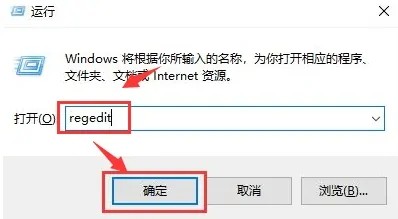 2、输入regedit后点击确定打开注册表;