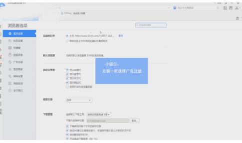 3、在设置页面左侧的栏目功能中找到并点击广告过滤功能。