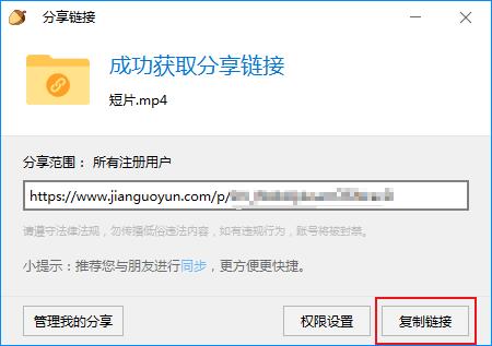 4、将文件拖到对话框后,坚果云会自动为文件生成一个分享链接。单击分享链接,与他人分享文件。