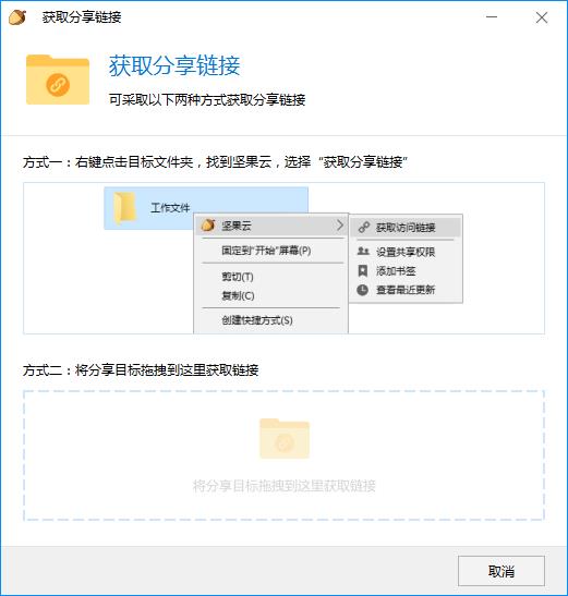 2、使用坚果云分享文件有两种方式,一种是右键单击文件获取分享链接,一种是拖放文件获取链接。