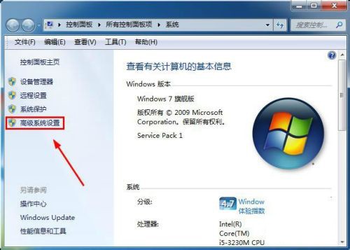 2、接着在打开的界面中点击左侧的【高级系统设置】