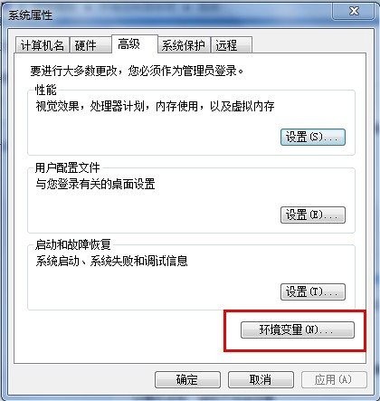 3、然后选择【系统属性】窗口的【高级】选项卡,并点击下方的【环境变量】按钮