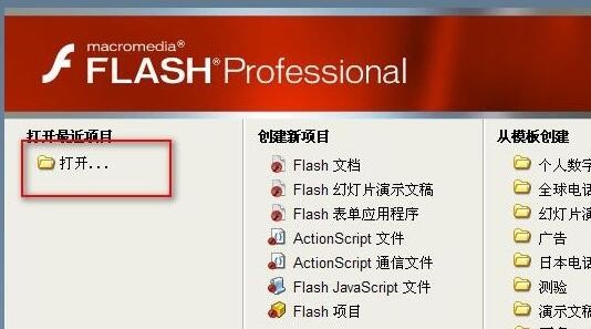 1、首先下载安装一个flash,打开它选择“打开”
