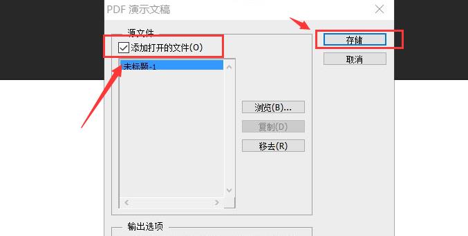 3、在打开的设置窗口中,选择添加打开文件选项,然后单击存储按钮。