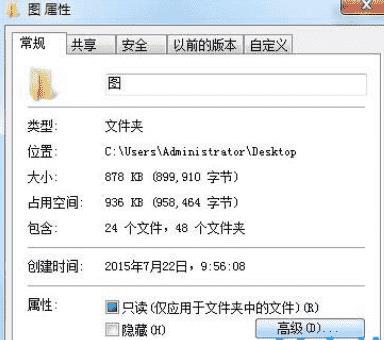 4、返回到属性的常规页面,勾选隐藏点击确定即可。