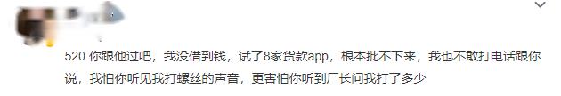 1、520 你跟他过吧,我没借到钱,试了8家货款app,根本批不下来,我也不敢打电话跟你说,我怕你听见我打螺丝的声音,更害怕你听到厂长问我打了多少。