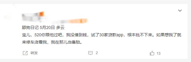 3、宝儿,520你跟他过吧,我没借到钱,试了30家贷款app,根本批不下来。如果想我了就来修车店看我,我在那儿当备胎。