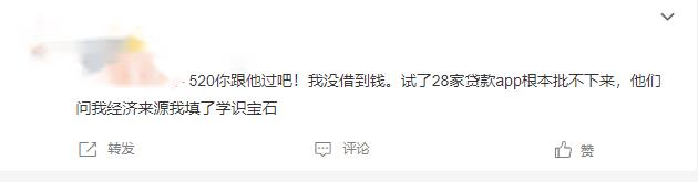 2、520你跟他过吧!我没借到钱。试了28家贷款app根本批不下来,他们问我经济来源我填了学识宝石。