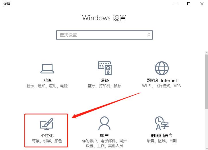 1、打开开始菜单,选择设置,在设置界面点击【个性化】