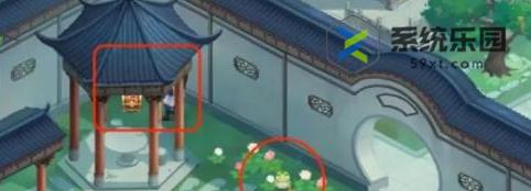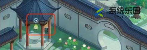 玩家需要多次点击六角亭下青蛙,就可以看到宝箱