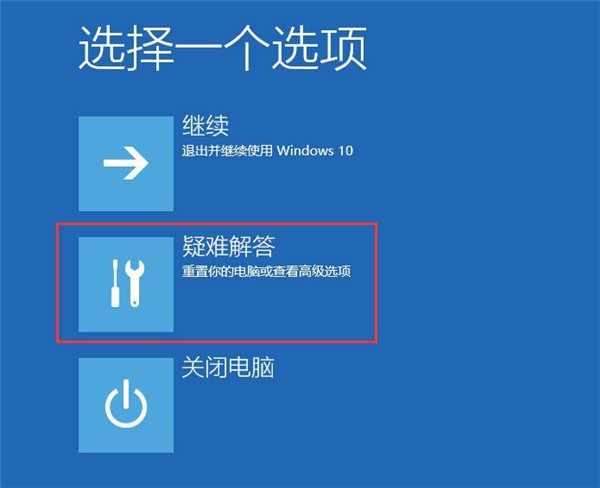 4、系统自动进入安全操作界面,选择“疑难解答”;
