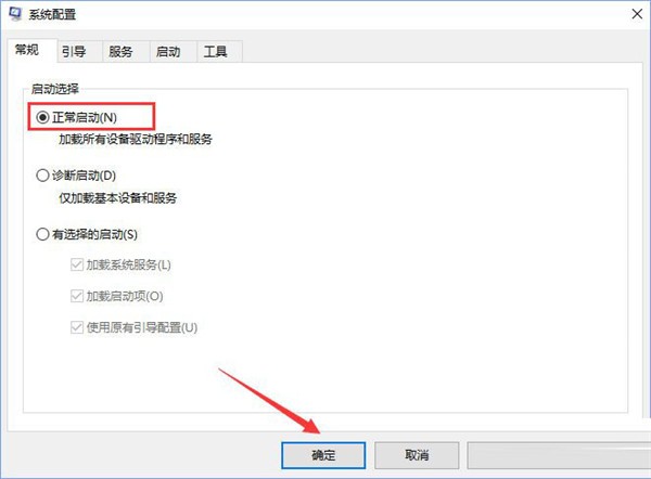10、在系统配置的通用选择卡下,点击“正常启动”,然后点击“确定”重启计算机,显示密码输入框!