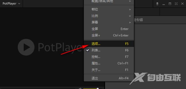 1、双击打开软件,右击界面空白处,选择列表中的"选项"打开。