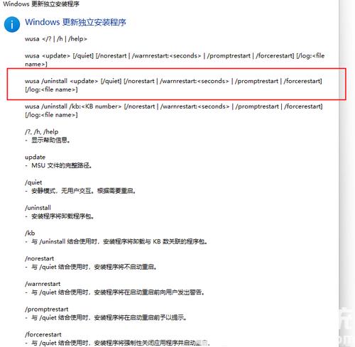 3、输入命令后会弹出一个新的命令提示符窗口,红框标出的即卸载系统更新的命令行语法;