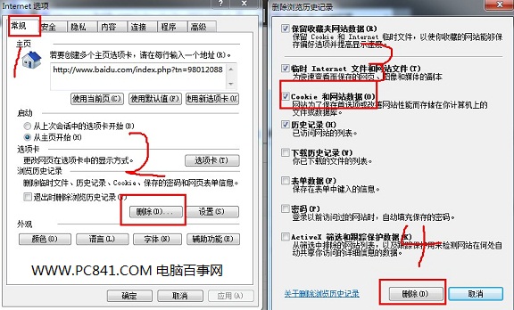 至于像360、谷歌一类的浏览器,删除方法于IE类似,都是“工具”-“Internet选项”-常规 “删除”-选中“Cookies”点击删除-重启浏览器即可。