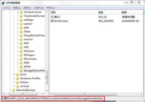 在注册表编辑器中依次点击HKEY_LOCAL_MACHINE\SYSTEM\CurrentControlSet\Control\StorageDevicePolicies.
